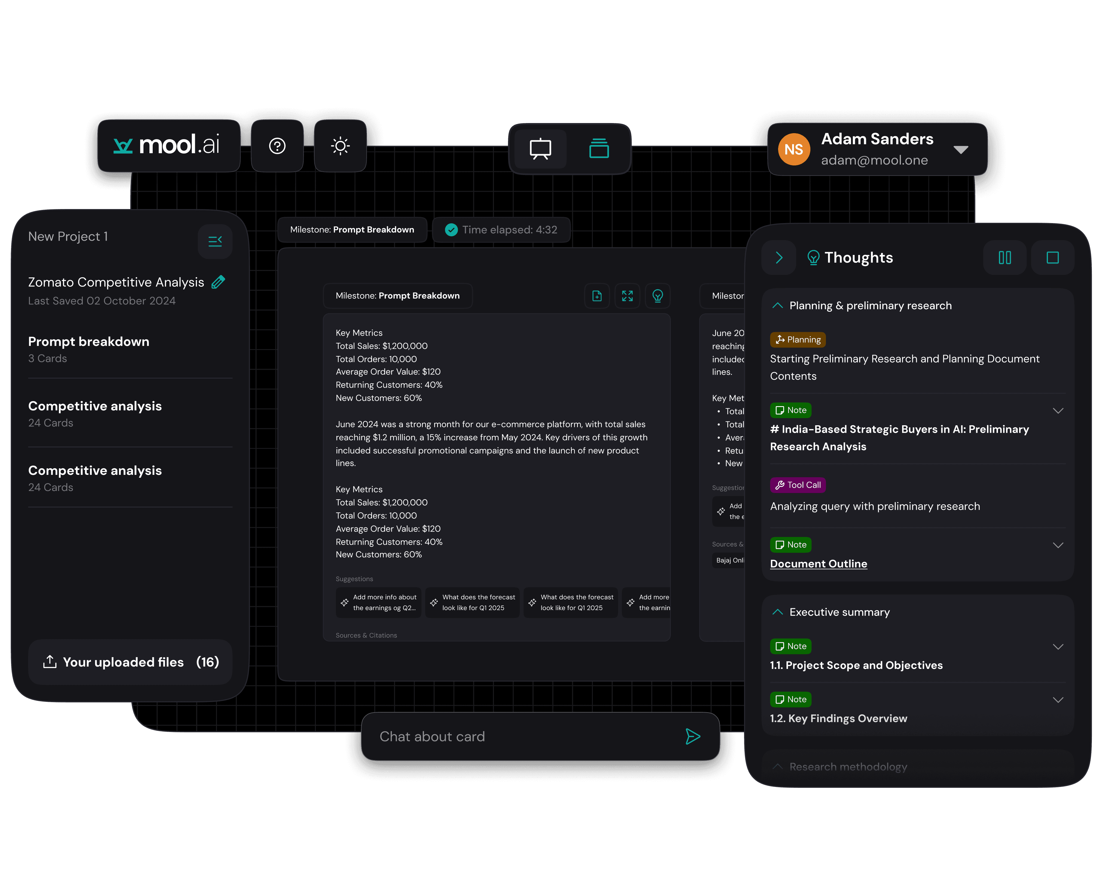 Mool Capital equips capital teams with structured, analyst-grade outputs — built to match the speed of markets and the depth of institutional decision-making. From discovery to decision, every element of our system is built to reduce friction, increase clarity, and close the loop.